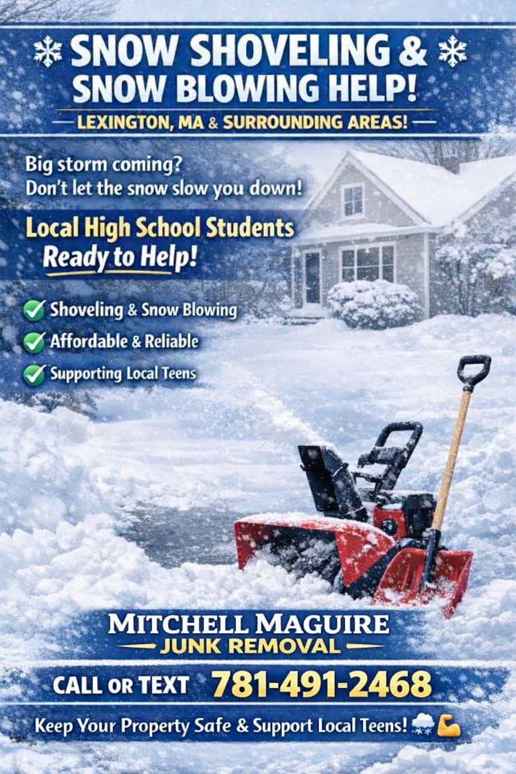 Need reliable snow removal in Lexington and surrounding towns? We offer fast, dependable service for both last-minute storms and seasonal contracts.